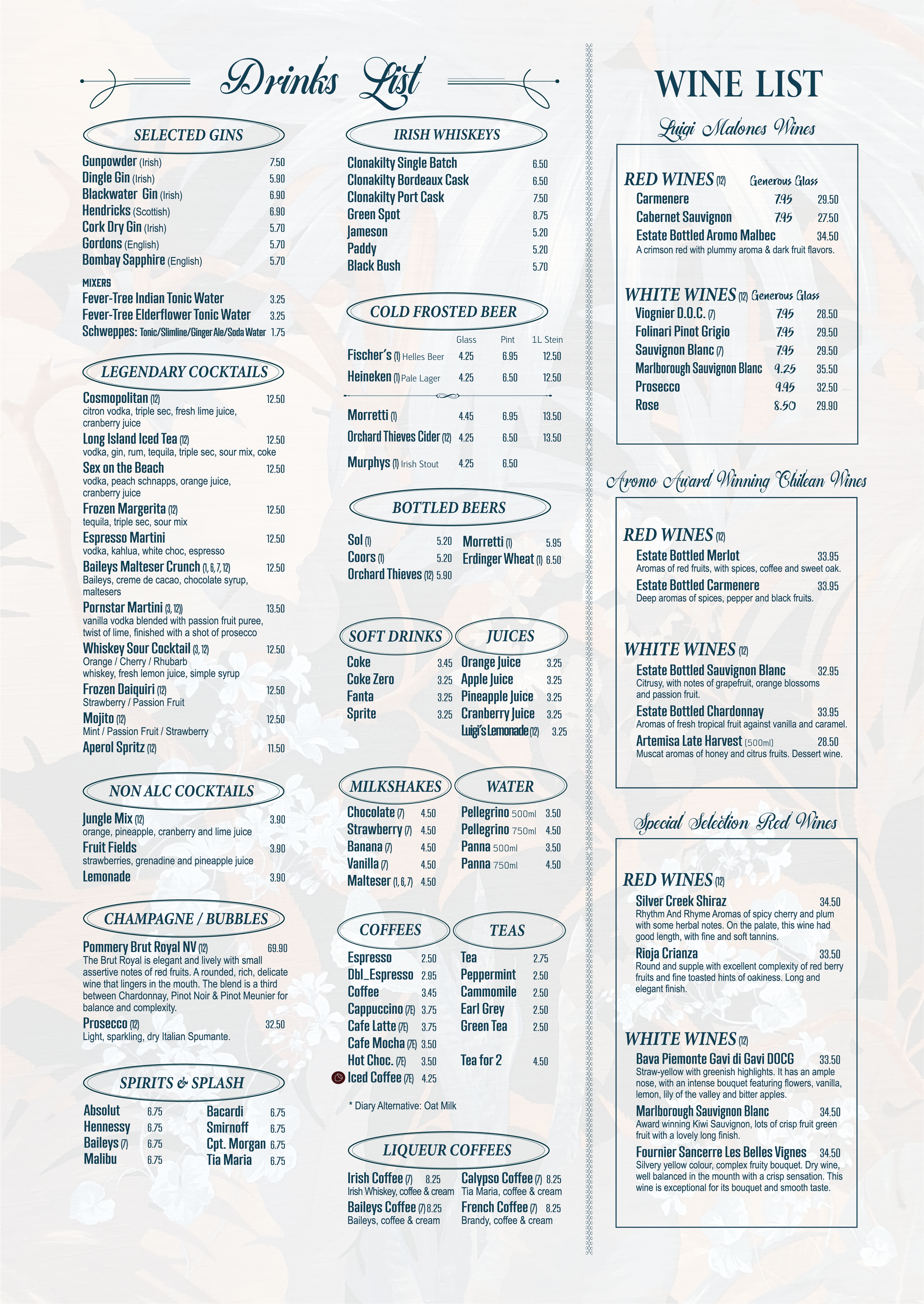 Lunch Menu (Mon-Fri 12-4pm) Jan-Nov